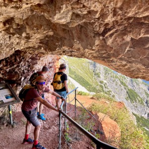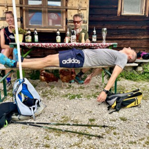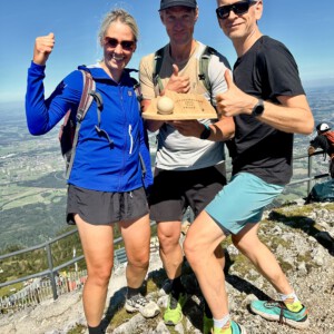 Micha Tscheuschner 1:19, Carmen Keppler 1:21, Stefan Keppler und Tanja Haisch vollendeten unsere Gruppe im Ziel. Mega! Und total überraschend! Team 2 konnte mit Tanja, Stefan und Micha den zweiten Platz in der Durchschnittszeit Team Wertung gewinnen. Nach einer Siegerehrung mit super Aussicht, belohnten wir uns noch mit einer Wanderung auf dem Thomas Eder Steig, der mit vielen tollen Aussichten Richtung Salzburg und mit einer spektakulärer Streckenführung glänzt.