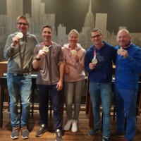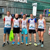Scheinbar unbeeindruckt von diesen Umständen zeigte Rouven Lutz eine grandiose Leistung. Beim Halbmarathonsplit zeigte die Uhr 1:18 Stunden und ließ ein Finish gut unter 2:45 Std. erhoffen. Noch bis Kilometer 30 lief er jeden Kilometer unter 4 Minuten. Trotz leichter Einbußen auf dem letzten Drittel kam er nach 2:44:08 Std. ins Ziel, was einer Verbesserung seiner bisherigen Bestzeit beim letztjährigen Zürich-Marathon um 11 Minuten bedeutet. Ein erfolgreiches Finale beim Zieleinlauf in der stimmungsgeladenen Frankfurter Festhalle durften auch die anderen cool-runner erleben. Mit Tanja Haisch, die ihren ersten Marathon mit guter Renneinteilung nach fast genau 4 Stunden beendete (4:00:29) und Thomas Schütz, der bei der HM-Marke noch knapp über dem 3-Stunden-Ziel war und schließlich glücklich und zufrieden nach 3:10 Stunden finishte, waren zwei Marathon-Neulinge erfolgreich am Werk. Auch für die beiden erfahrenen Marathonläufer Domenik Behnke und Peter Hauck waren mentale Stärke und Durchhaltewillen die entscheidenden Faktoren, das Rennen erfolgreich zu beenden. Trotz einiger Herausforderungen in der zweiten Streckenhälfte finishten die beiden mit akzeptablen Zielzeiten. Die Bestzeiten in vergangen Jahren sollten sich heute für die Beiden nicht wiederholen. Aber die Finishes für Behnke nach 3:13 Std. und Hauck nach 3:34 Stunden können sich sehen lassen.